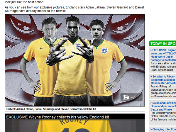 『Dailymail』は、発表されたばかりのイングランド代表新ユニフォームネタをチョイス。