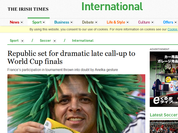 『Irish Times』は、予選で敗退したアイルランド代表チームが「ブラジルW杯へ出場か?」と報道。