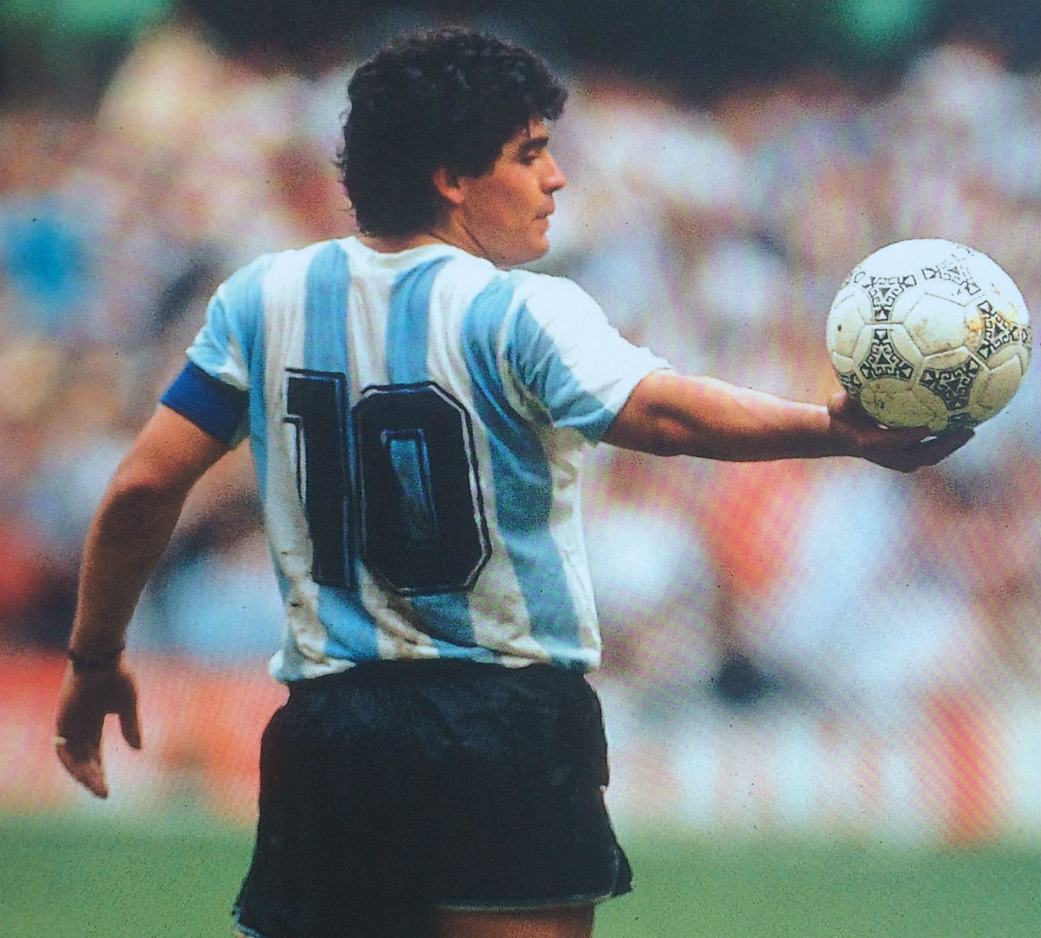 90年代までによく見られたフォントたち(ガスコインのイングランド(上)、マラドーナのアルゼンチン(下))、当時は元になるフォントは違えど、この様な文字を囲ったデザインが主流だった。マラドーナといえばこの書体を思い出すオールドファンも多いだろう。