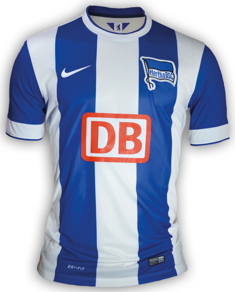 ヘルタ・ベルリンの2014-15ホームは引き続き、青と白のストライプ柄を採用。2013-14モデルに比べて線の幅が太くなったほか、背番号部分が青一色から白一色へ変更されている。
