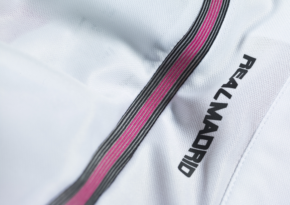 写真では分かりづらいが、表身頃にクラブの偉大な歴史に敬意を表した星、そしてホームスタジアムであるサンティアゴ・ベルナベウの特徴的なラインが光沢で表現されている。