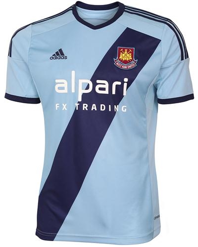 ウェストハムは5日、2014-15シーズンに向けて新しいアウェイユニフォームを発表。デザインはアウェイカラーとして使われることが多い水色をベースに、紺のタスキモチーフを採用した。