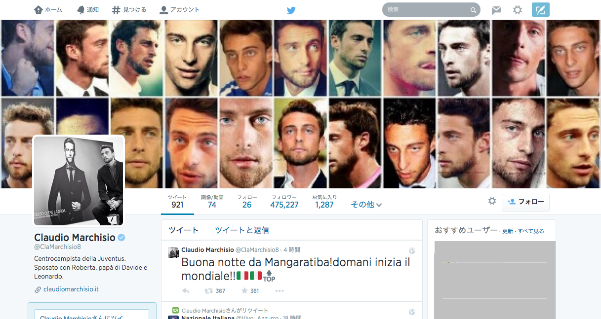 — Nazionale Italiana (@Vivo_Azzurro) 2014, 6月 11今大会でも屈指の男前として知られるマルキージオだが、彼のTwitterアカウントをチェックしたところ、なかなかの衝撃を受けたのでご紹介。