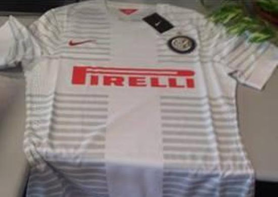 アウェイは定番の白をベースに、インテルらしいクロスモチーフとボーダー柄を組み合わせたデザインの様子。