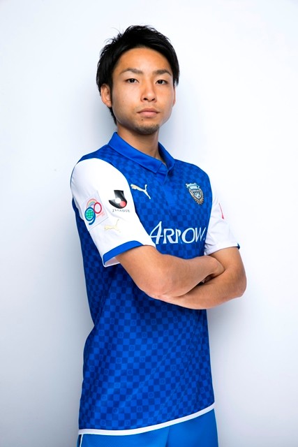 ここまで大久保(8得点)に次ぐ6得点をあげている小林悠。右袖には通常のホームタウンマーク「KAWASAKI」に代わって入れられた「川崎市制90周年ロゴ」が見える。