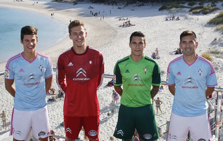 2013-14シーズンからadidasと契約しているセルタは26日、2014-15シーズンに向けた新ユニフォームを発表。伝統であるセレステ(Celeste)、空色のホームは、シャドーのボーダー柄が入った汎用のテンプレートを使用し、差し色として初のピンクを取り入れている。