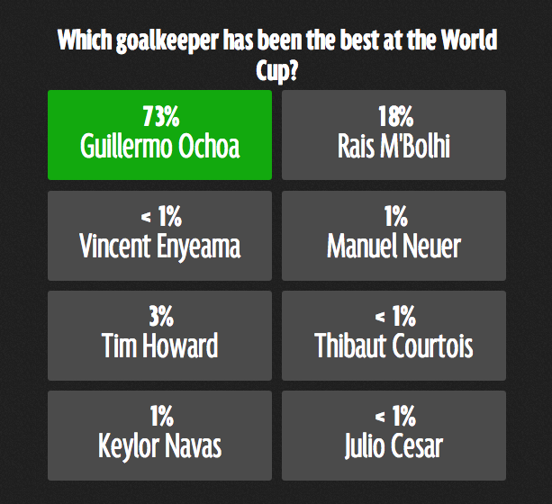 これぞ圧勝。やはり王者ブラジル相手にオチョアが見せたパフォーマンスが、多くの人の記憶に残っているようだ。
