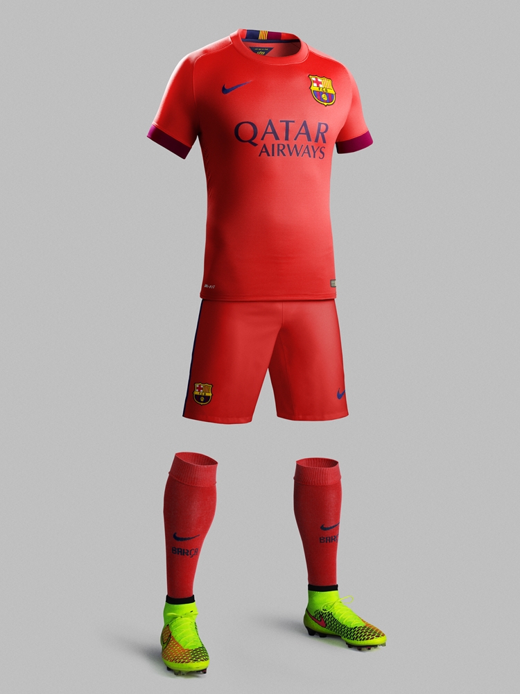 ホームに続き発表されたバルセロナの2014-15アウェイは、クラブの基礎と言える下部組織「ラ・マシア」から、その若々しい精神を表現したブライトクリムゾンを採用。