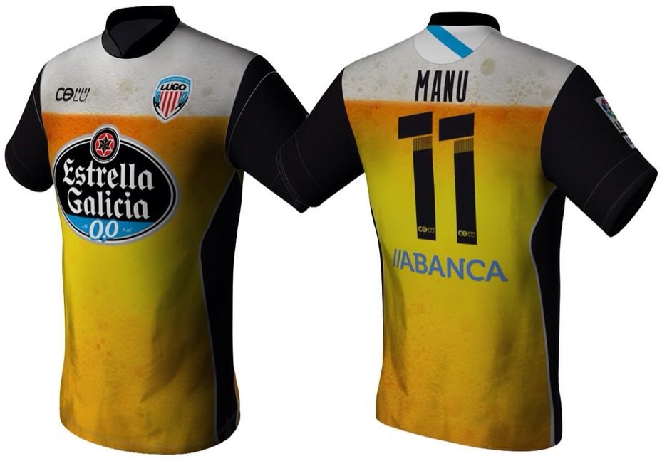 ルーゴの胸スポンサーが地元のビールメーカー「エストレージャ・ガリシア(Estrella Galicia)」であることに由来するデザインで、自前のブランドながら非常によくできており見ているだけで一杯吞みたくなってくる。
