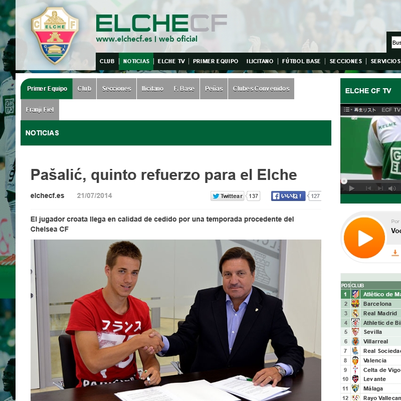 一方、今夏新たに加入した選手の一人、クロアチアU-21代表MFのマリオ・パシャリッチは、リーガ・エスパニョーラのエルチェへ1年間のローンが決定。21日に正式発表されたのだが・・・。