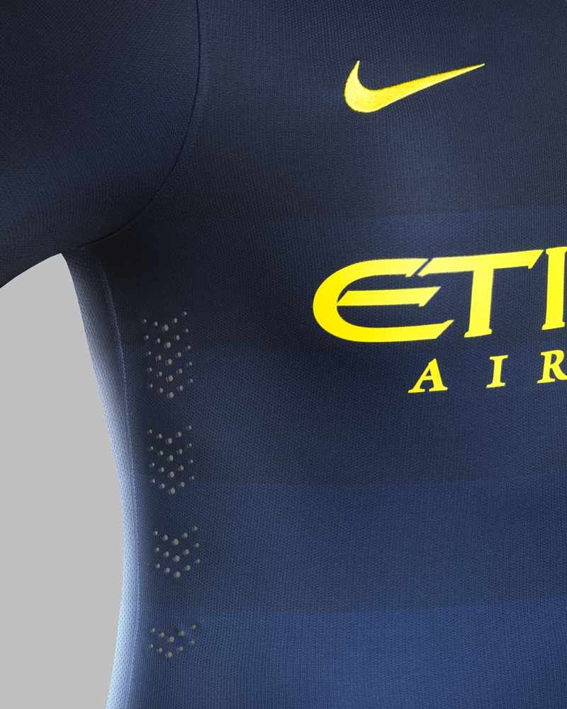 発表済みの2014-15モデルを含むホームがスカイブルーのシティだが、紺のアウェイはそこまで珍しいわけではなく、近年ではUmbro時代の2010-11モデルで使われている。