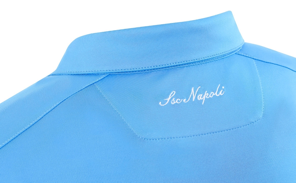 後身頃の上部には “SSC Napoli”の文字。“Societa Sportiva Calcio”の略に小文字を交えているのが珍しい。