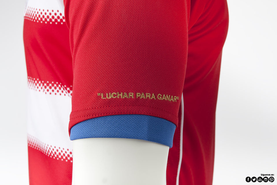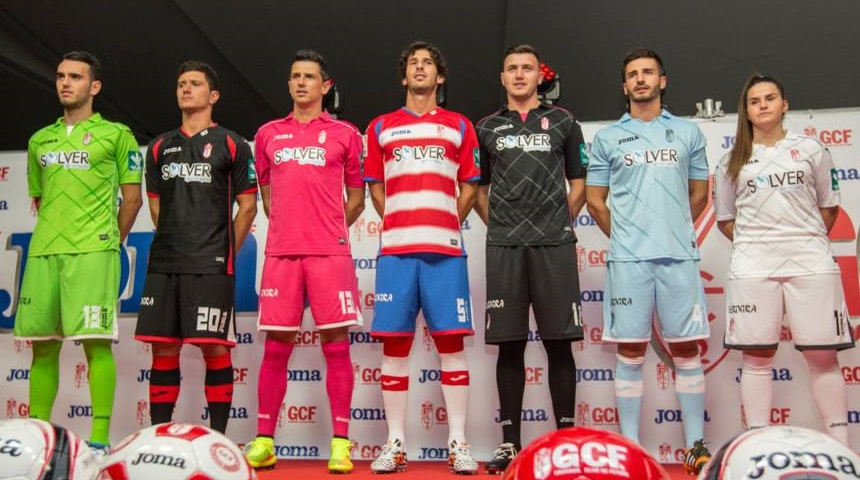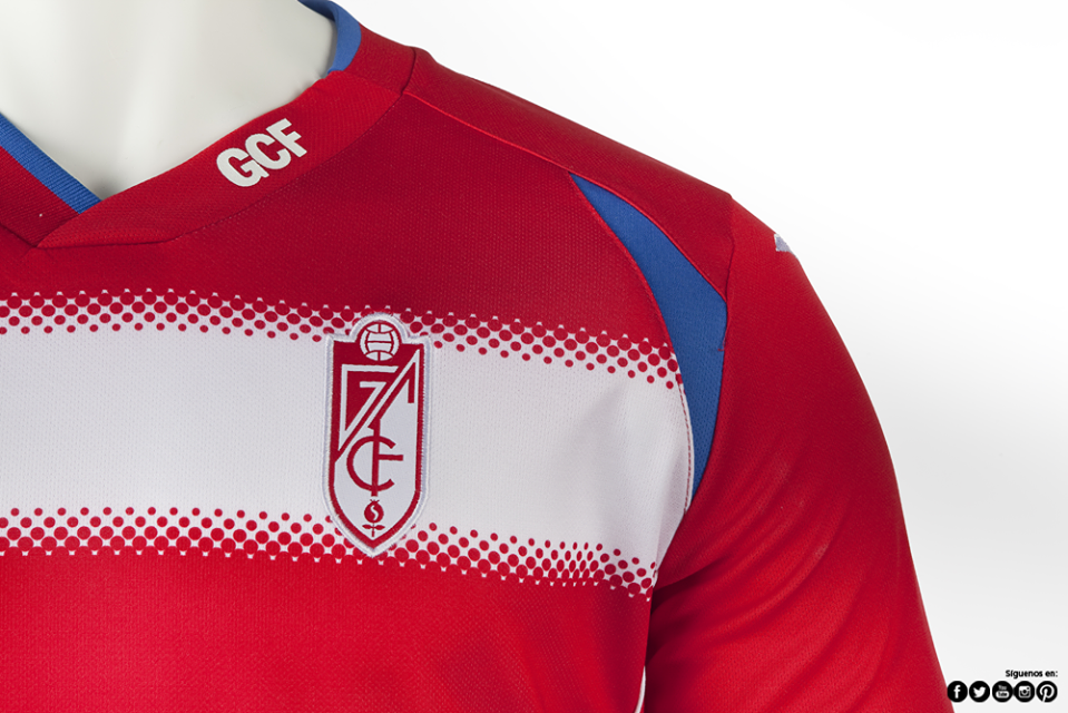 グラナダは昨季までLuanviのサポートを受けていたが、6月にJomaとの契約を発表。2014-15ホームは伝統的な赤と白のボーダーに差し色として青が配されたデザインとなった。