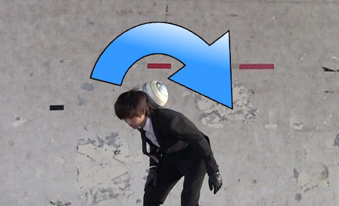 このように、180°回転で済ませることで技全体に余裕ができ簡単にこなす事ができます。