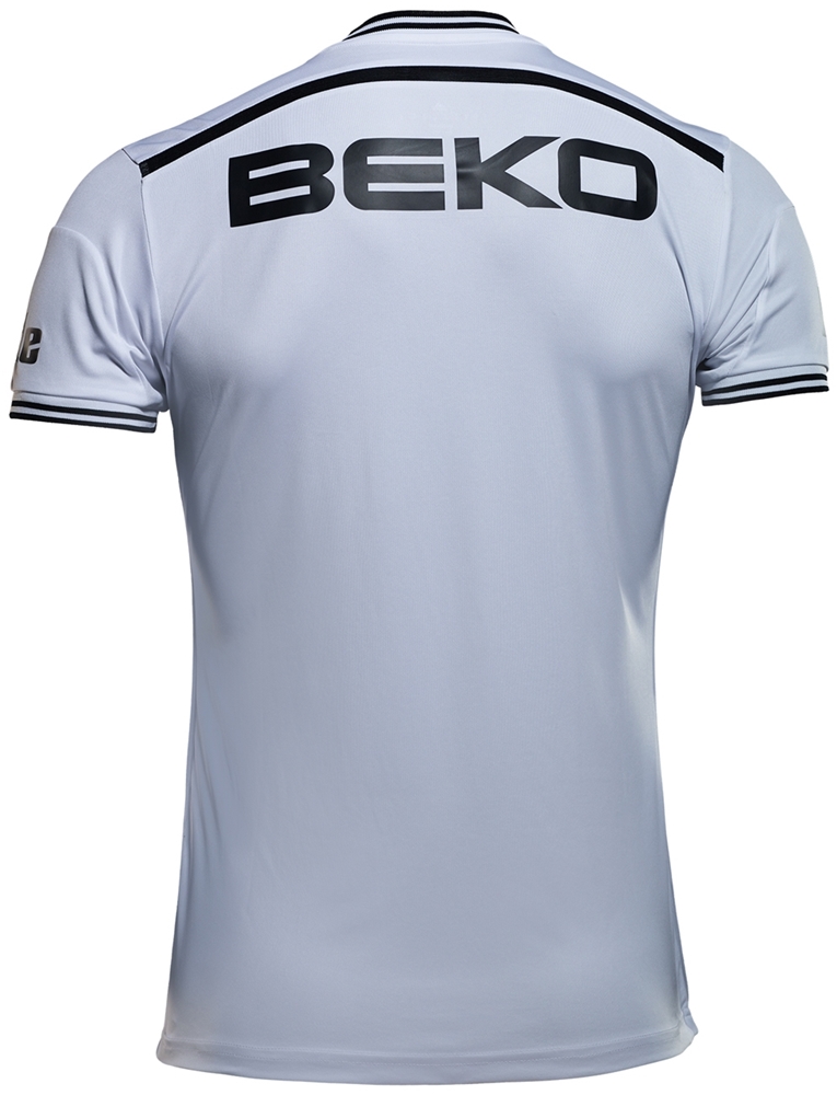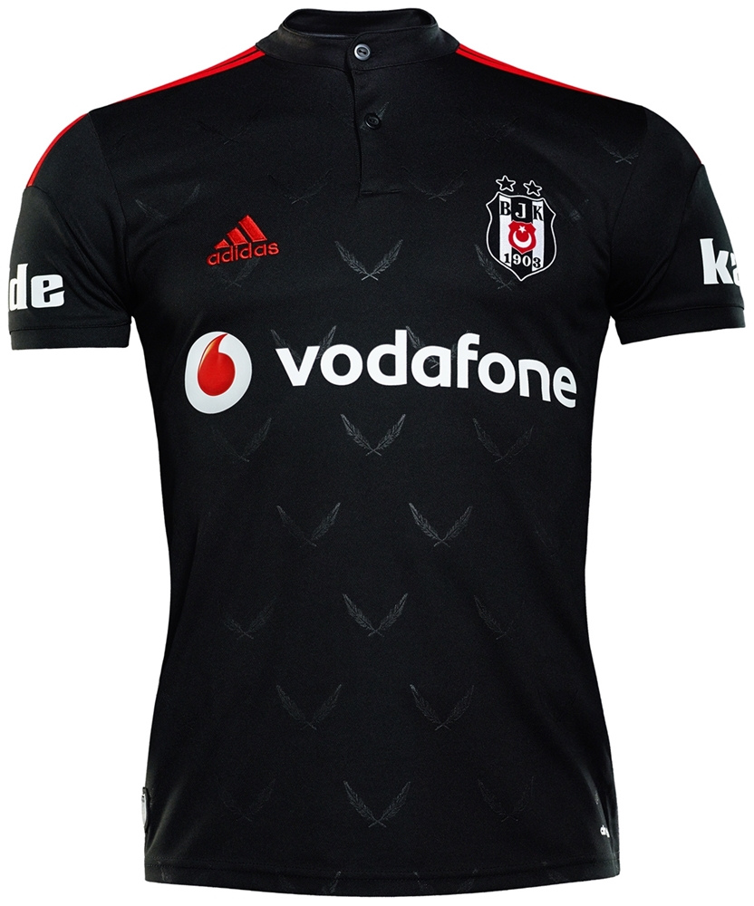 アウェイは黒をベースに、レアル・マドリーの2014-15モデルでお馴染みの「マオカラー」を採用。前身頃には“Kara Kartal”(黒い鷲)の愛称を持つベシクタシュらしい鷲の羽が透かしでデザインされている。