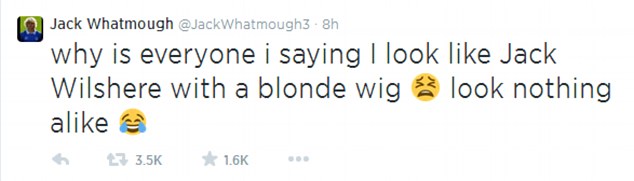 「なんでみんな、おれが金髪のウィッグをつけたウィルシャーに似てるって言うの?全く似てねーよ」という内容。これがまたたく間に拡散され、英国中のファンが「どれどれ」と検索したようだ。
