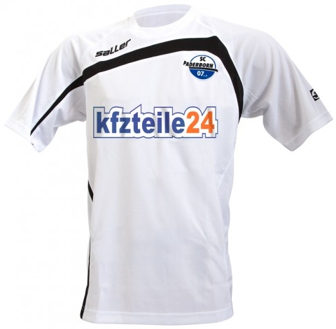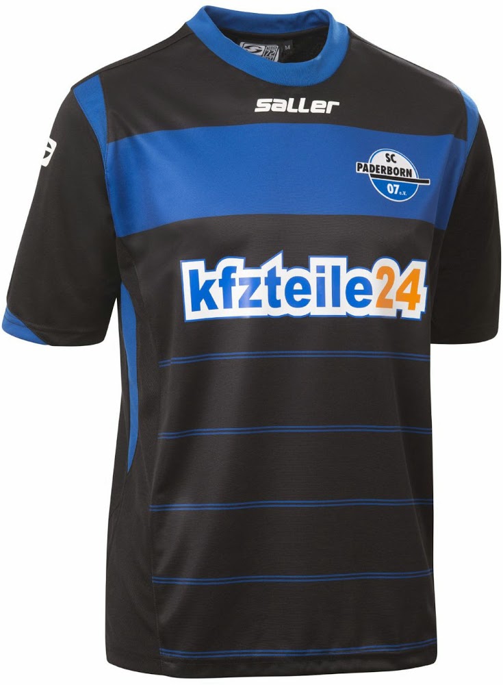 記念すべき1部でのファーストシーズンを戦う、パーダーボルンの2014-15新ユニフォーム。ホームはクラブを象徴する青と黒の変則的なボーダー柄を採用。胸スポンサーは昨年2年契約を結んだカー用品チェーン、kfzteile24が引き続き務める。