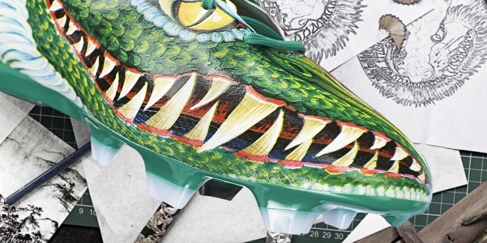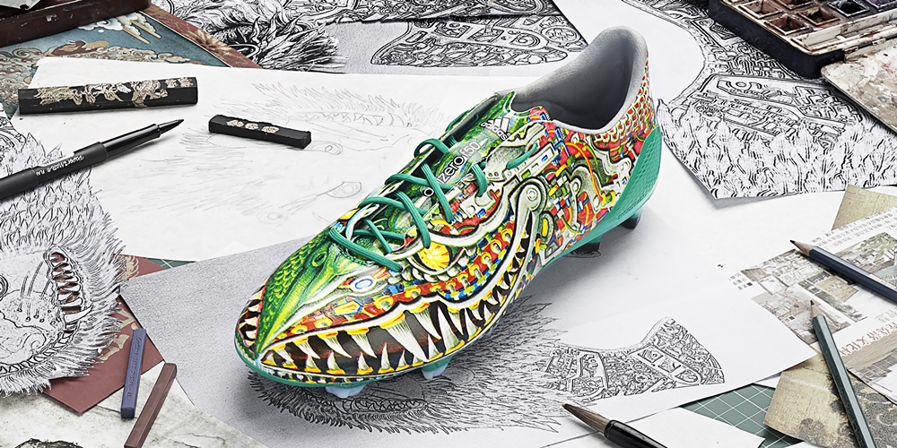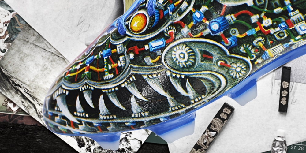 adidasの軽量系スパイク「アディゼロ f50」の最新モデルをベースに、今回は左右の足で別々のデザインを施したアシンメトリー仕様。おそらくマドリーのサードユニフォームに取り入れられた「ドラゴン・キング」と「ドラゴン・バード」をそれぞれイメージしている。