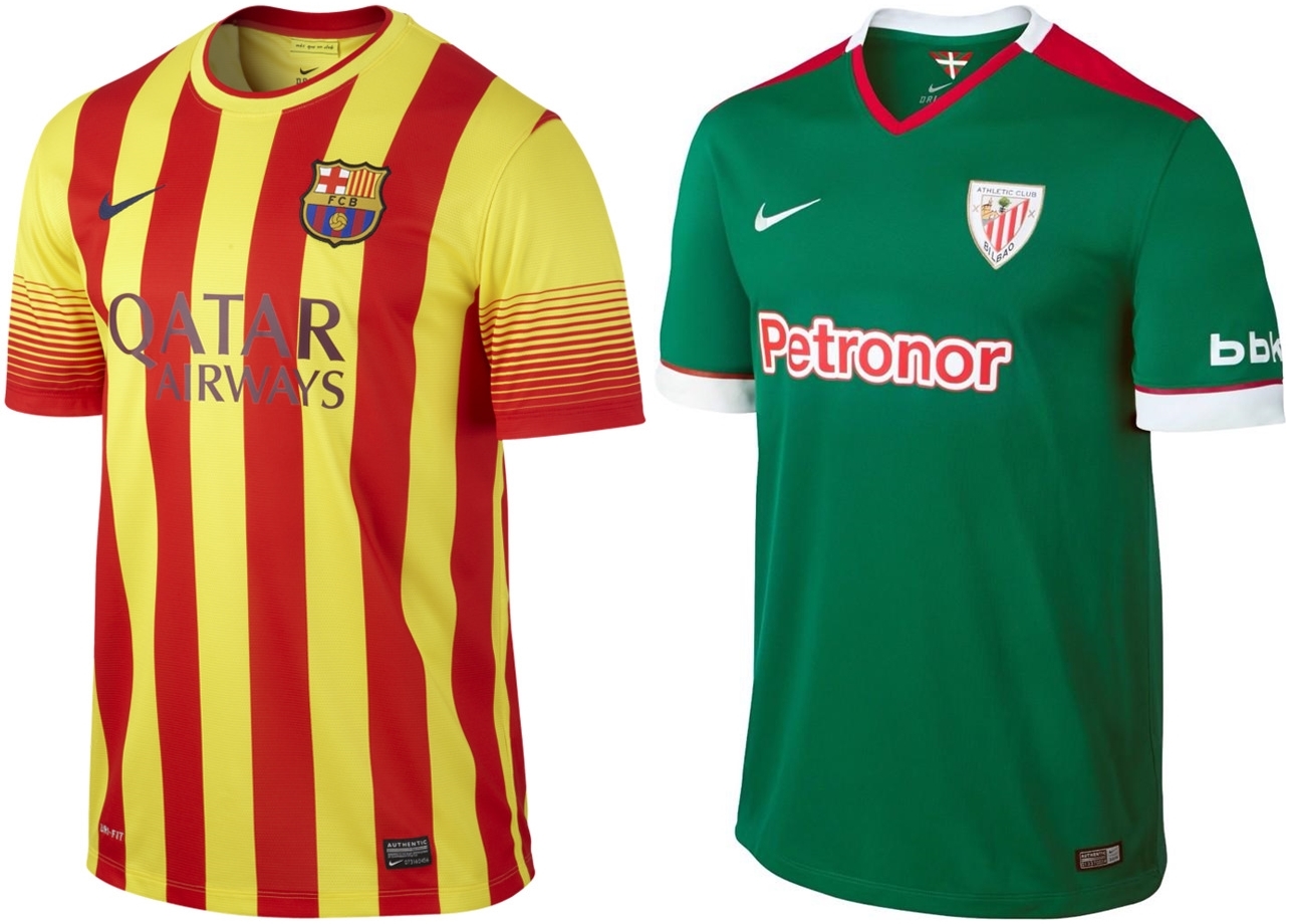また、今回の試合、アスレティック・ビルバオも2014-15のアウェイユニフォームである バスク旗 “Ikurriña”(イクリニャ)をベースにした緑のユニフォームを使用。
