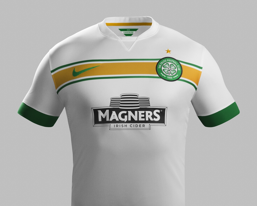 サードは、クラブが創設された1888年当時に使用していた白のユニフォームに触発されたデザインで、繋がりの深いアイルランドに由来する三色をバランスよく配置。胸には引き続きアイルランドの酒造メーカー、C&C Groupの別ブランドである「Magners」のロゴが入る。