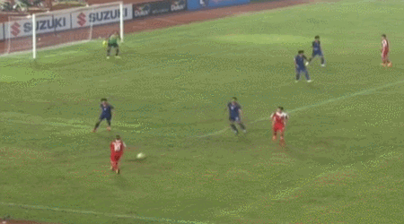 ホームのラオスが2点を先行したことでカンボジアは万事休すかと思ったが、その後すぐに得点を取り返す。まずはこのクオン・ラボラヴィの見事なシュート。