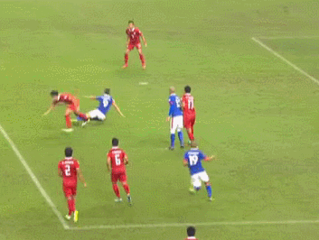 試合は開始直後に動きを見せた。キックオフからわずか5分、右からの折り返しの際にノルシャフルル・イドランがスティヌン・プクホムと接触。これがPKの判定となり、マレーシアが一点を返す。