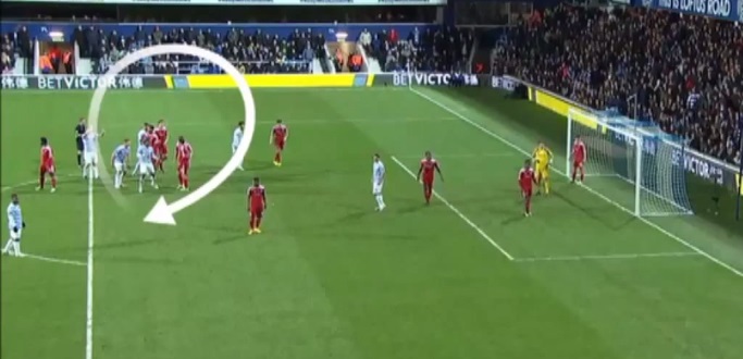 守るWBAはマンマーク(+ゾーン?)を敷くも相手FWチャーリー・オースティンにヘディングでのゴールを許した。キャラガーはこのシーンついて、(マークに意識をとられ)ディフェンダーたちの注意から大事な危険性を取り去ってしまうマンマークにおける事例だと言及。