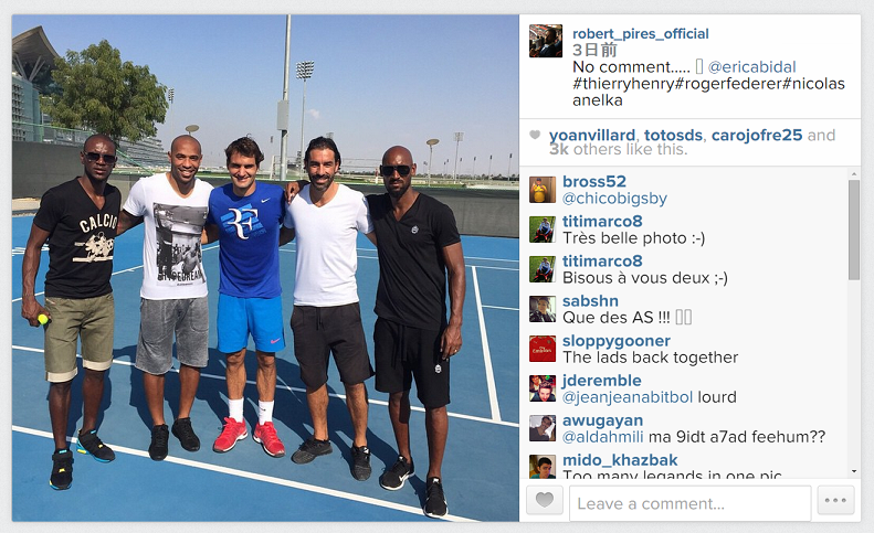 フェデラーはこの年始、UAEのドバイで過ごしていたようなのだが、先日現役からの引退を発表したティエリ・アンリやエリック・アビダル、ロベール・ピレス、二コラ・アネルカと時をともにしたようで、全豪オープンに向けちょっとしたリラックスタイムを送っていたようだ。
