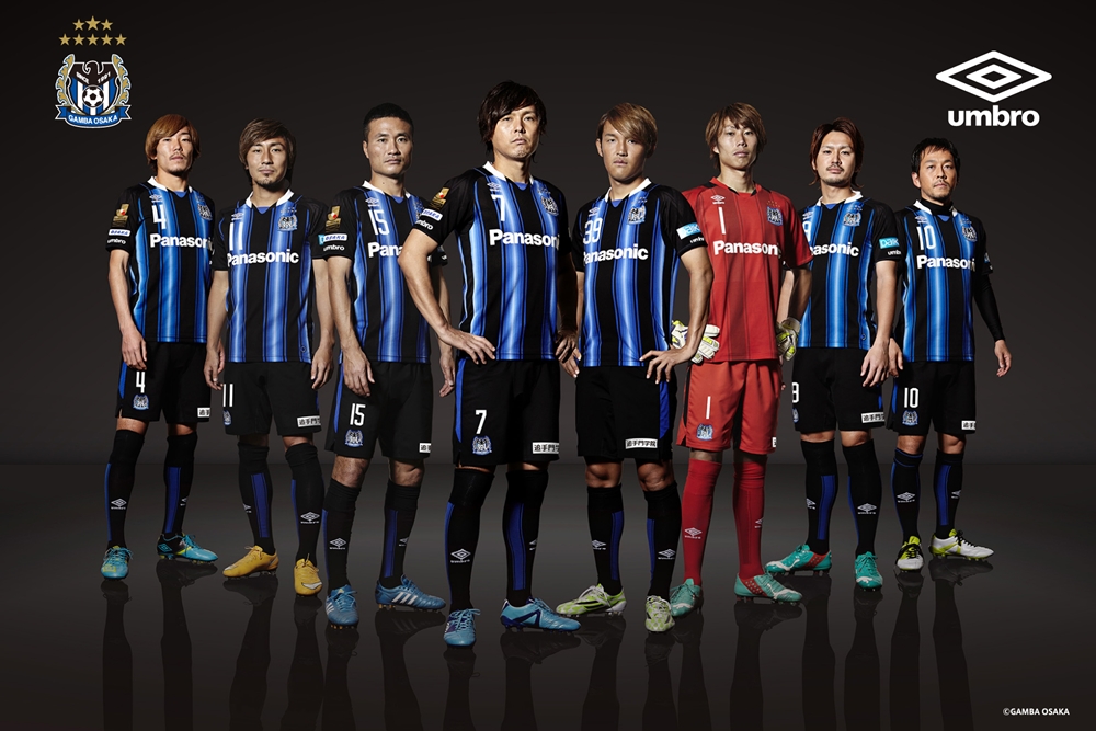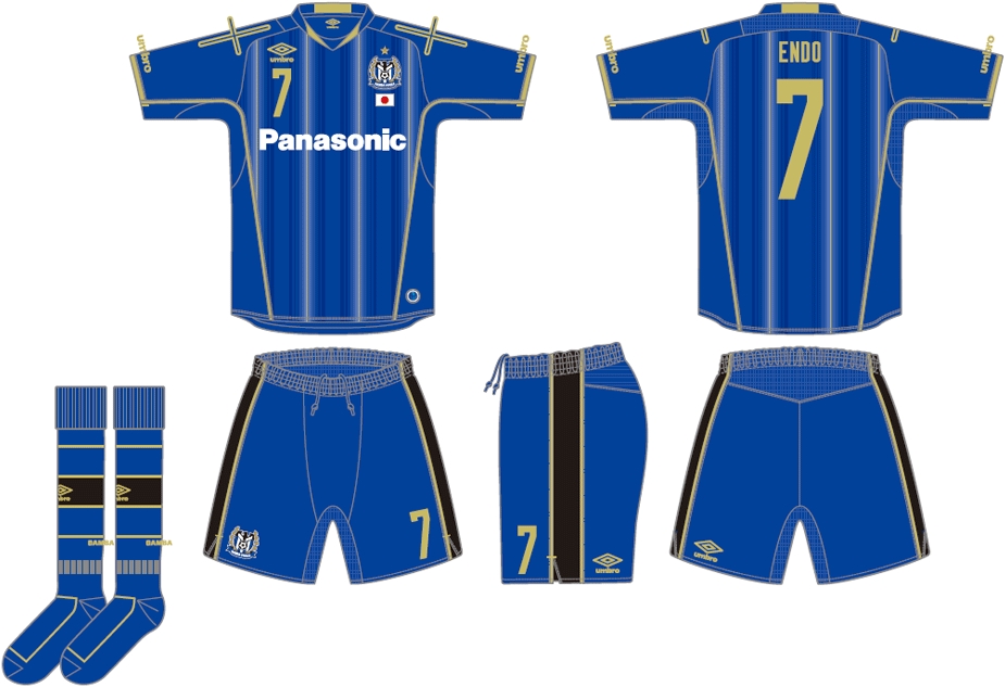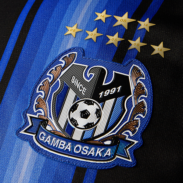 ホームは、ガンバの特徴でもある「スピード感のあるパスサッカー」を表現すべく、チームカラーの青を用いた、稲妻を想起させるグラデーションストライプを採用。