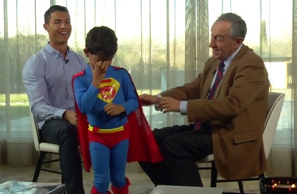 レベロ氏は“フル"コスプレで登場したクリスティアーノくんに「君がこれを父親にできることは最大の賛辞だ。君にはスーパーマンな父がいる」と語りかけたそう。また、レベロ氏がロナウドに「父親よりもシャイだね」と話したところ、父ロナウドは「とても礼儀正しい子なんだ」と返したようだ。