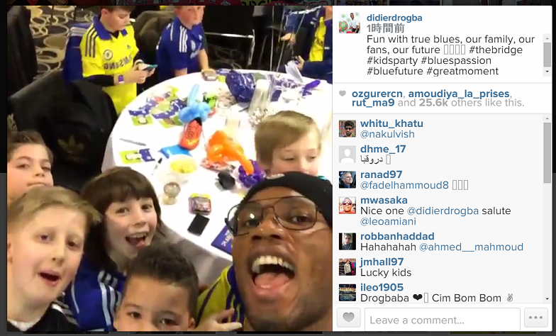 さて、そんなセルフィーをよく投稿しているのがチェルシーFWディディエ・ドログバである。トッティのあの一枚から一週間弱、チェルシーを代表するムードメーカーが見せた一枚は、こんなに騒がしいものであった。