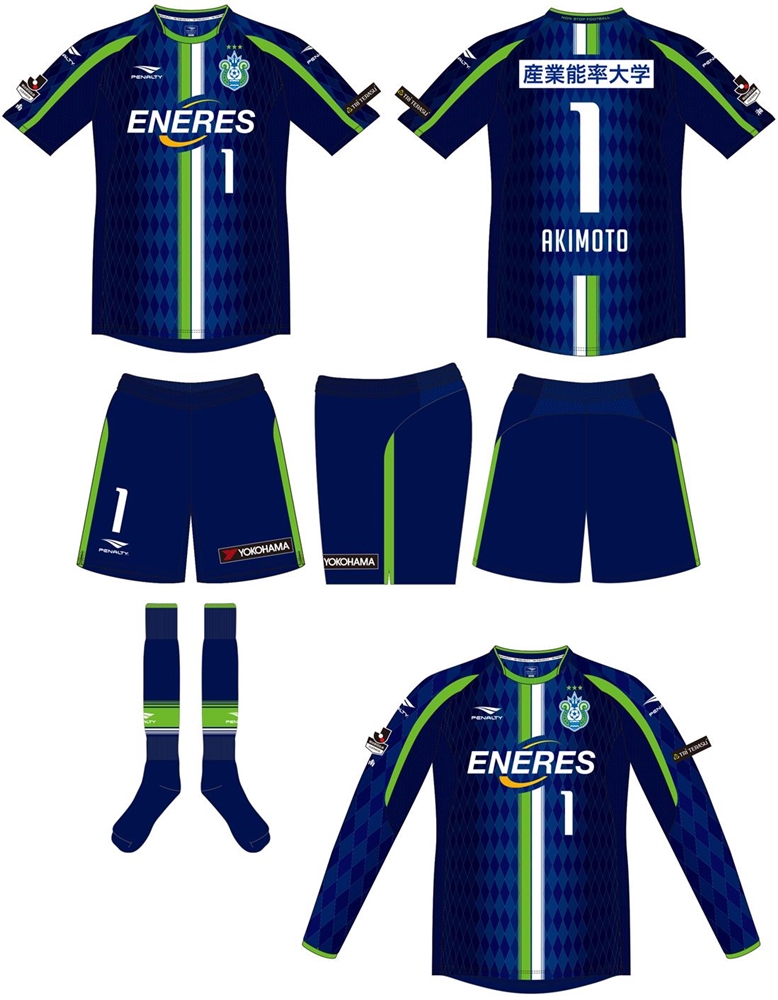 それぞれフィールドプレーヤー用のデザインを踏襲しているが、紺のホームはサイドからセンターに向かって徐々に明るくなる菱形グラデーションパターンを採用。深い海に光が差し込んだようなイメージとなっている。