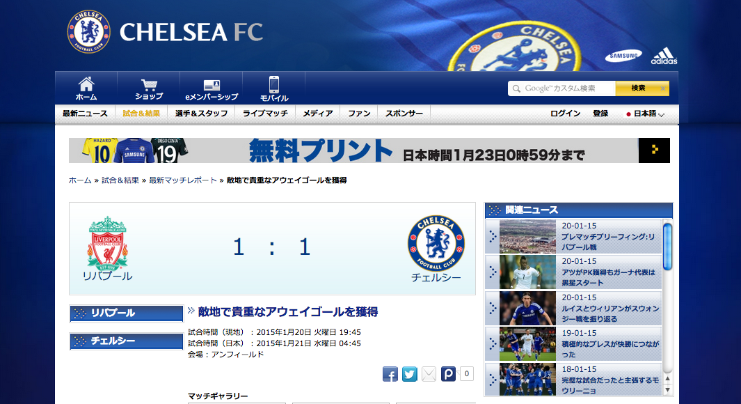 こちらは、チェルシーが展開する日本語公式HPである。