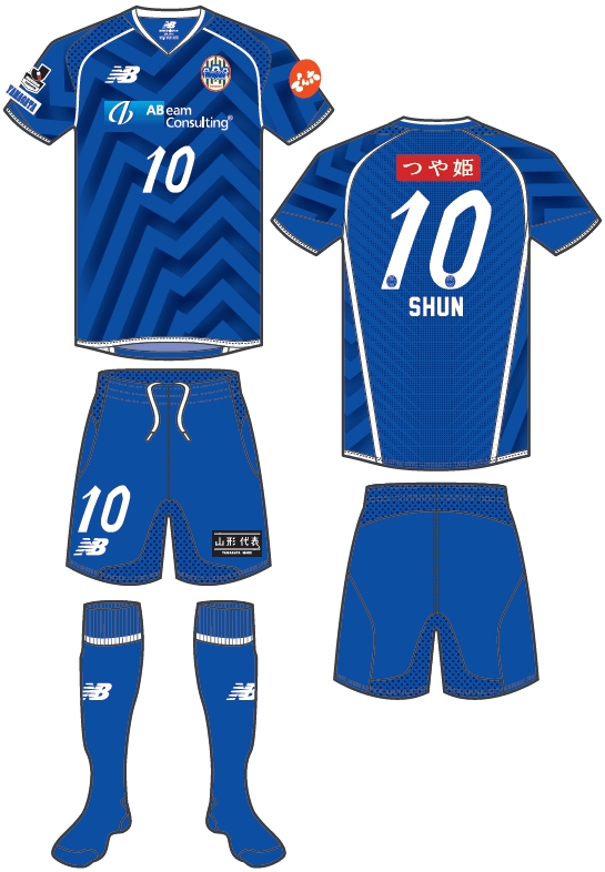ホーム(1st)は、モンテディオブルーを忠実に再現し、胸部分にはクラブエンブレムにある出羽三山をイメージ。