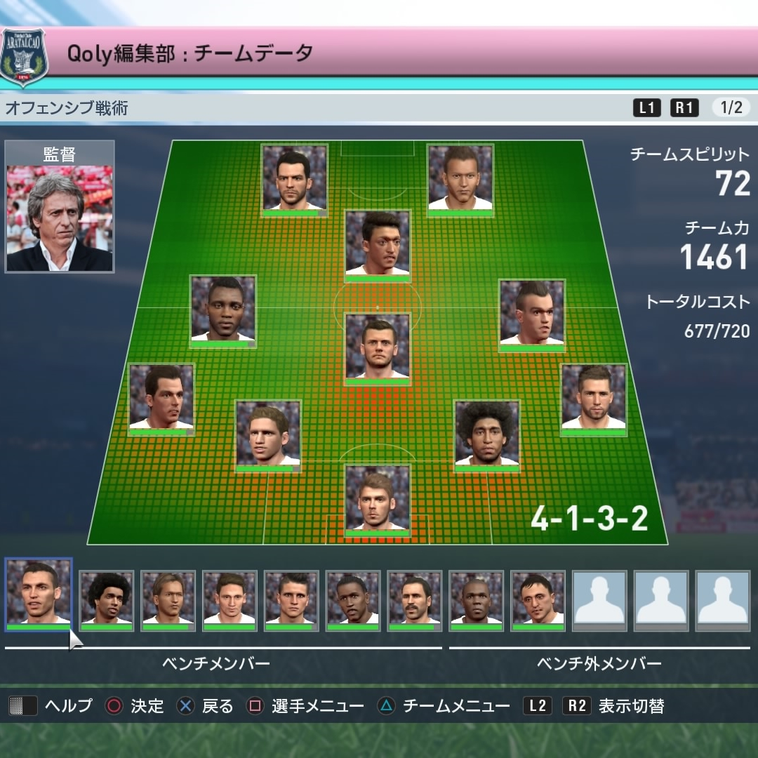 監督はジョルジェ・ジェズスで、気づけばバレンシア2トップに。中盤は結構“前のめり"な感じです。アフロ枠でダンチとアス・エコト(控え)もメンバーに入れてみました。