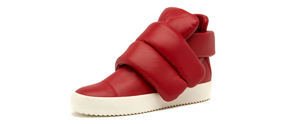 そして、もうひとつ気になるのが足元。でかいベルクロがインパクト大のこのスニーカーはイタリア人デザイナー、ジュゼッペ・ザノッティのブランド『Giuseppe Zanotti Design』のアイテムだと思われる。