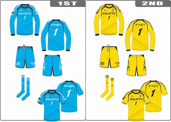 その愛媛が2015シーズンに使用する新ユニフォーム。(画像:ミズノ、愛媛FC)