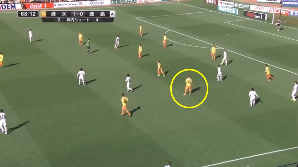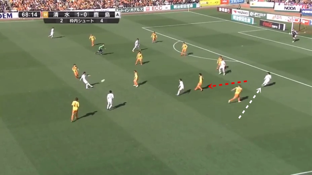後半、1点ビハインドの鹿島が開始から猛攻を仕かけ、清水はやや押し込まれていた。