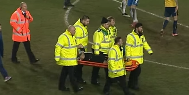 おそらくおどけてやったのだろうが、負傷の程度は思いのほか悪くミラー主審はストレッチャーでピッチの外へと運び出された後、救急車で病院へと搬送されている。ヒザの負傷が疑われているとのこと。