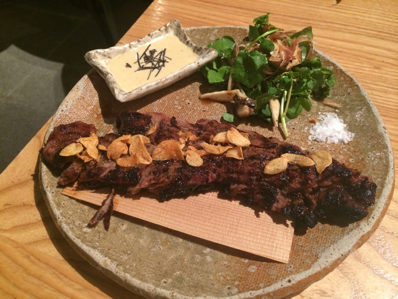 お肉がとても柔らかいだけでなく、付け合わせがクレソン・みょうが・エリンギをわさび醤油で合わせていて、手が込んでいます。