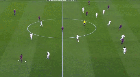 ダニ・アウヴェスからの正確なロングパスを、走りながらアウトサイドで完璧にコントロール。ボールが弾んだ直後にタッチすることで適度なバックスピンをかけていることが分かる。