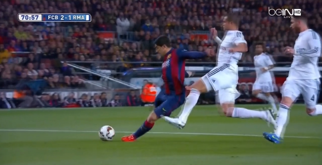 バルサがセットプレーからジェレミ・マテューのゴールで先制するも、レアル・マドリーもエースのクリスティアーノ・ロナウドが決めて同点。そのまま1-1で折り返した試合、決勝点を奪ったのは昨季プレミアリーグ得点王の輝きを取り戻したウルグアイ代表FW、ルイス・スアレスであった。