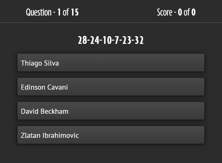 この選手であれば、28という背番号からキャリアをスタートさせ、24、10、7、23、32という番号に変わっていったということ。問題は全て四択であり、全部で15問ある。