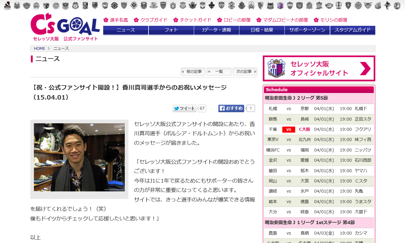 セレッソ大阪が、どこかで見たことのあるような公式ファンサイト「C's GOAL」を開設。