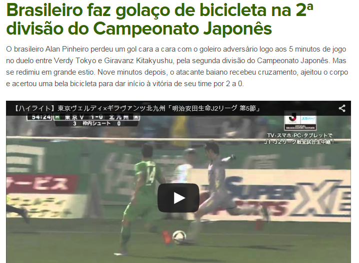 この記事カテゴリーは国外で活躍するブラジル人選手の動向を追っているもので、アラン・ピニェイロだけが特別というわけではないが、J2でのプレーぶりもしっかりチェックされているようだ。