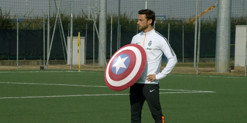 アンドレア・ピルロ(アイアンマン)、アルトゥロ・ビダル(ニック・フューリー)がそれぞれ驚異的なキックを見せる一方、クラウディオ・マルキージオ(キャプテン・アメリカ)は若干地味な役回り?