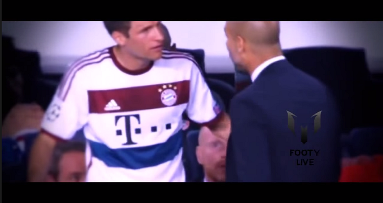 バイエルンのグアルディオラ監督は先発出場のトーマス・ミュラーに代えマリオ・ゲッツェを投入したのだが、その直後にミュラーとグアルディオラ監督が口論するシーンがあったのだ。