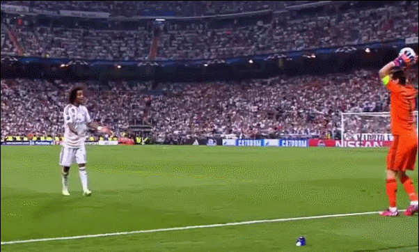 最後の猛攻を仕掛ける中で高い位置にいたイケル・カシージャスだが、マイボールを素早くマルセロへ渡そうとしたところ、まさかのファウルスロー・・・。