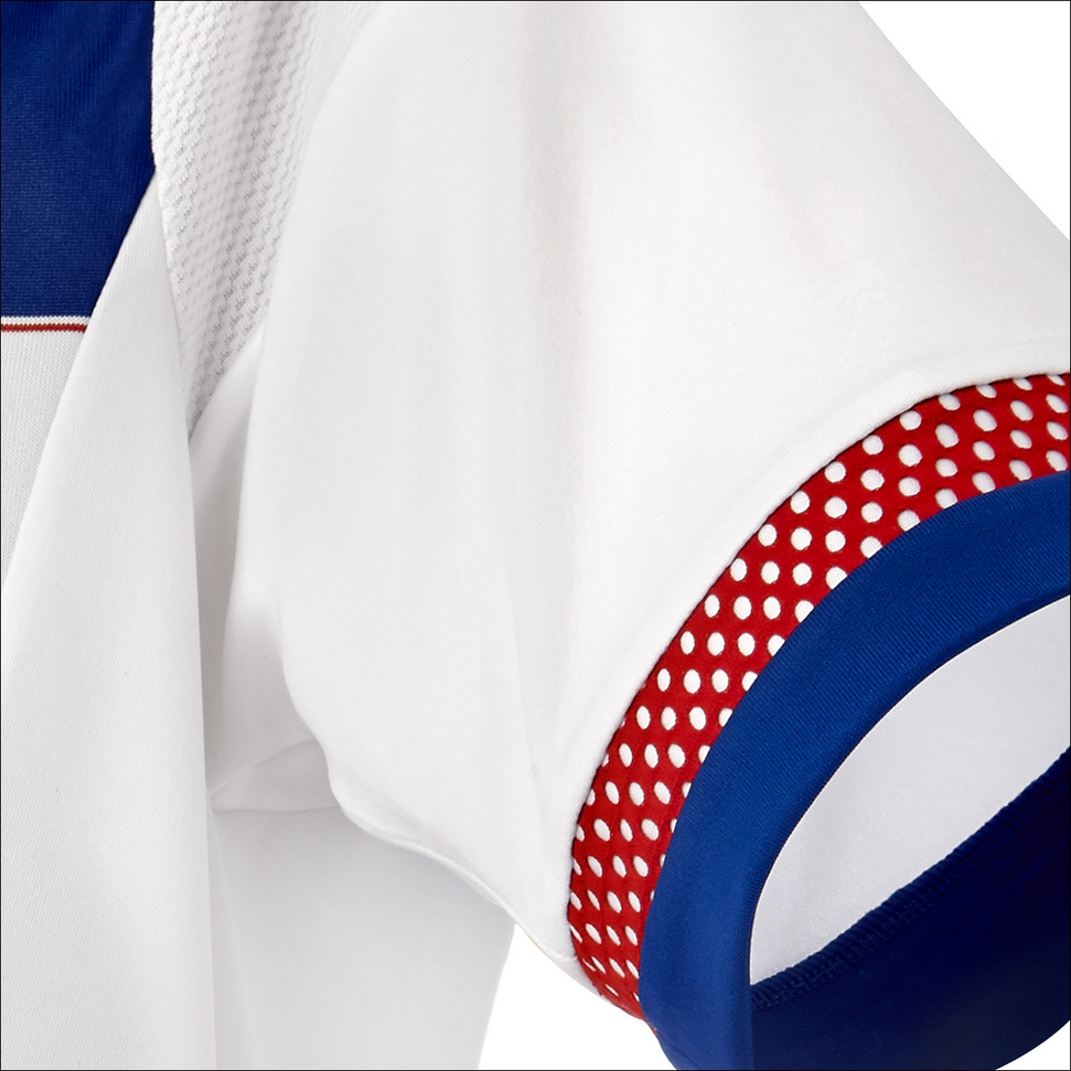 胸部分に大きく青を配置し、ボーダーのラインにはフランス国旗、そしてクラブカラーでもある「トリコロール」が使われている。