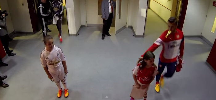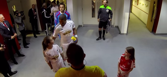 2:33~、スウォンジーのキャプテン、DFアシュリー・ウィリアムズはエスコートキッズの女の子とおしゃべり。